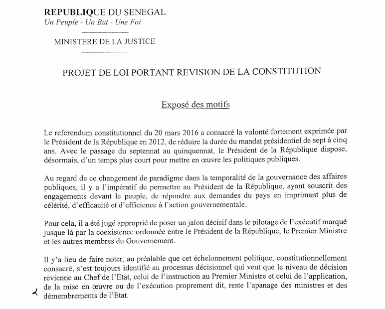 NETTALI.COM - Le président Macky Sall a transmis à l'Assemblée nationale le projet de loi portant réformes constitutionnelles et confirmant la suppression du poste de Premier ministre.
