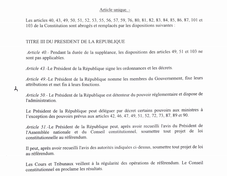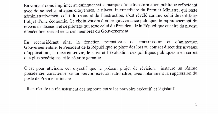 Dans le texte soumis aux députés, le chef de l'Etat renforce ses pouvoirs et reprend toutes les attributions qui étaient dévolues au chef du gouvernement. Nettali vous offre l'intégralité du texte soumis aux "représentants du peuple".