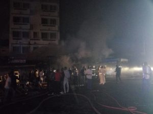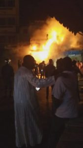 NETTALI.COM – Comme vous le voyez sur ces images, un incendie d’une rare violence, s’est déclaré ce soir, peu après 21 heures, au marché Sandaga, à hauteur de l’avenue Emile Badiane. Plusieurs cantines ont pris feu.