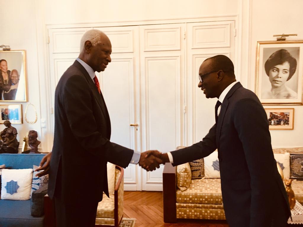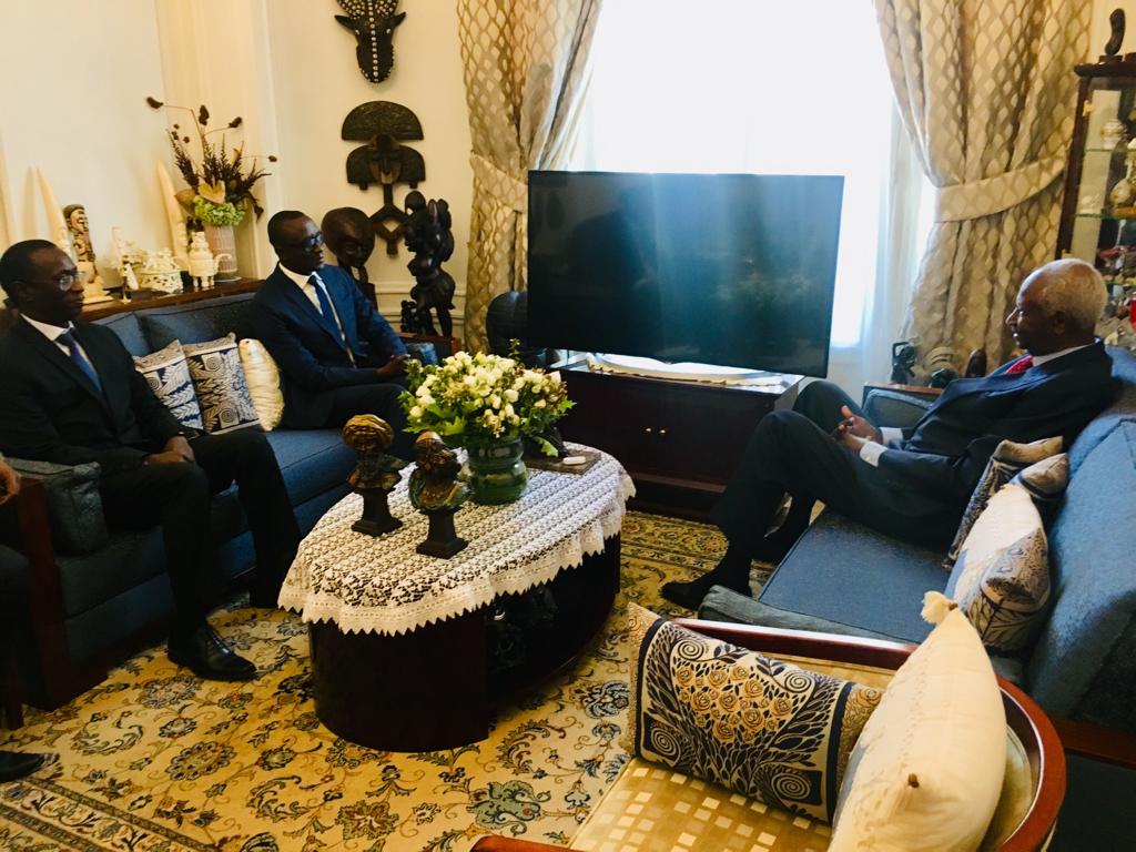 «Nous vous admirons également pour votre sens de l’éthique et c’est pourquoi nous avons souhaité venir vous rendre visite avec la forte recommandation du Président Macky Sall pour recueillir vos conseils et orientations», a dit l’ambassadeur Magatte Sèye au Président Diouf.
