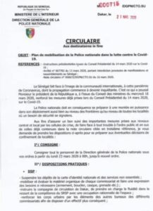NETTALI.COM - Le Coronavirus gagne dangereusement du terrain au Sénégal. Pour endiguer cette propagation, la Police nationale, à travers une circulaire que nous vous proposons in extenso, a dévoilé son plan de mobilisation.