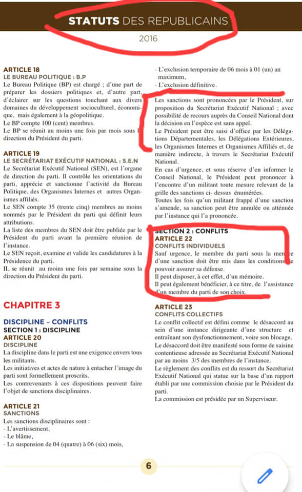 Aussi, avant toute exclusion, le membre concerné devait être mis dans une situation de se défendre (l’art 22 des statuts de l’Apr). En ne le faisant pas, l’Apr viole les droits de la défense.
