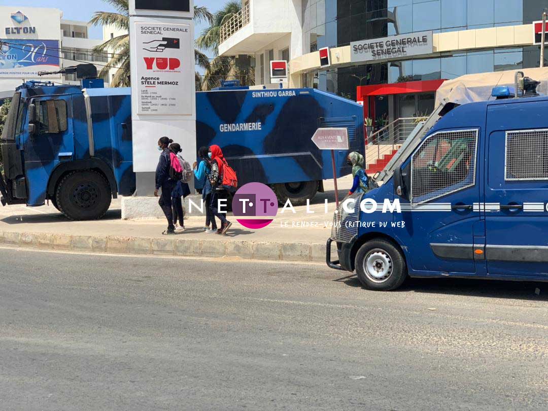 NETTALICOM - Avec les manifestations violentes et jets de pierres dans Dakar sur l'itinéraire qu'avait emprunté Ousmane Sonko pour se rendre au tribunal, certains points stratégiques de la ville ont été quadrillés par les forces de l'ordre, notamment les ronds-points : rond point Mermoz, rond-point Olympique club, rond-Point Ucad côté corniche, rond-point université-Point E et rond-Point Relai, rond-Point Boulangerie jaune Sacré-coeur, rond -point/Terrou Bi Cour suprême, etc. Regardez.