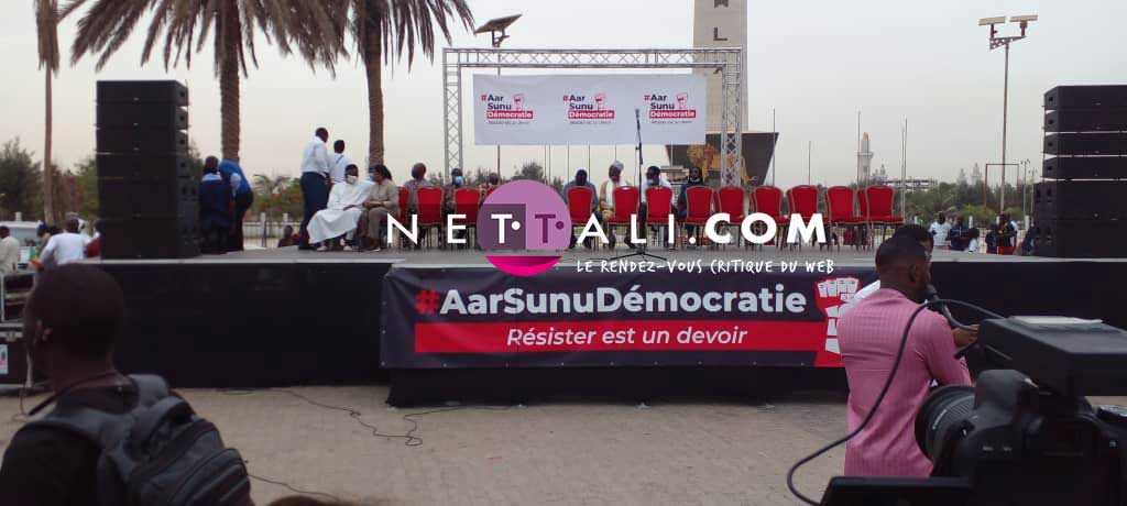 NETTALI.COM - Le Mouvement pour la défense de la démocratie (M2D) a réussi le pari de la mobilisation. Des centaines de jeunes ont répondu à son appel pour le grand rassemblement de ce vendredi 11 juin à la place de la nation. De nombreux leaders de partis ou responsables de mouvements citoyens ont aussi répondu à l'appel. Parmi eux, Ousmane Sonko de Pastef, Barthélemy Dias, Guy Marius Sagna, le rappeur Simon de "Y'en a marre"...