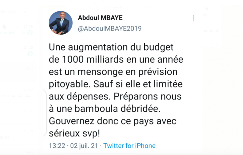Ils se demandent comment peut-on douter d'une progression de 10 % du budget 2022 par rapport à 2021, dans un contexte de relance de l'économie? pensant que l’ex-Premier ministre Abdoul Mbaye s'est trompé de chiffres et a fait preuve de légèreté.
