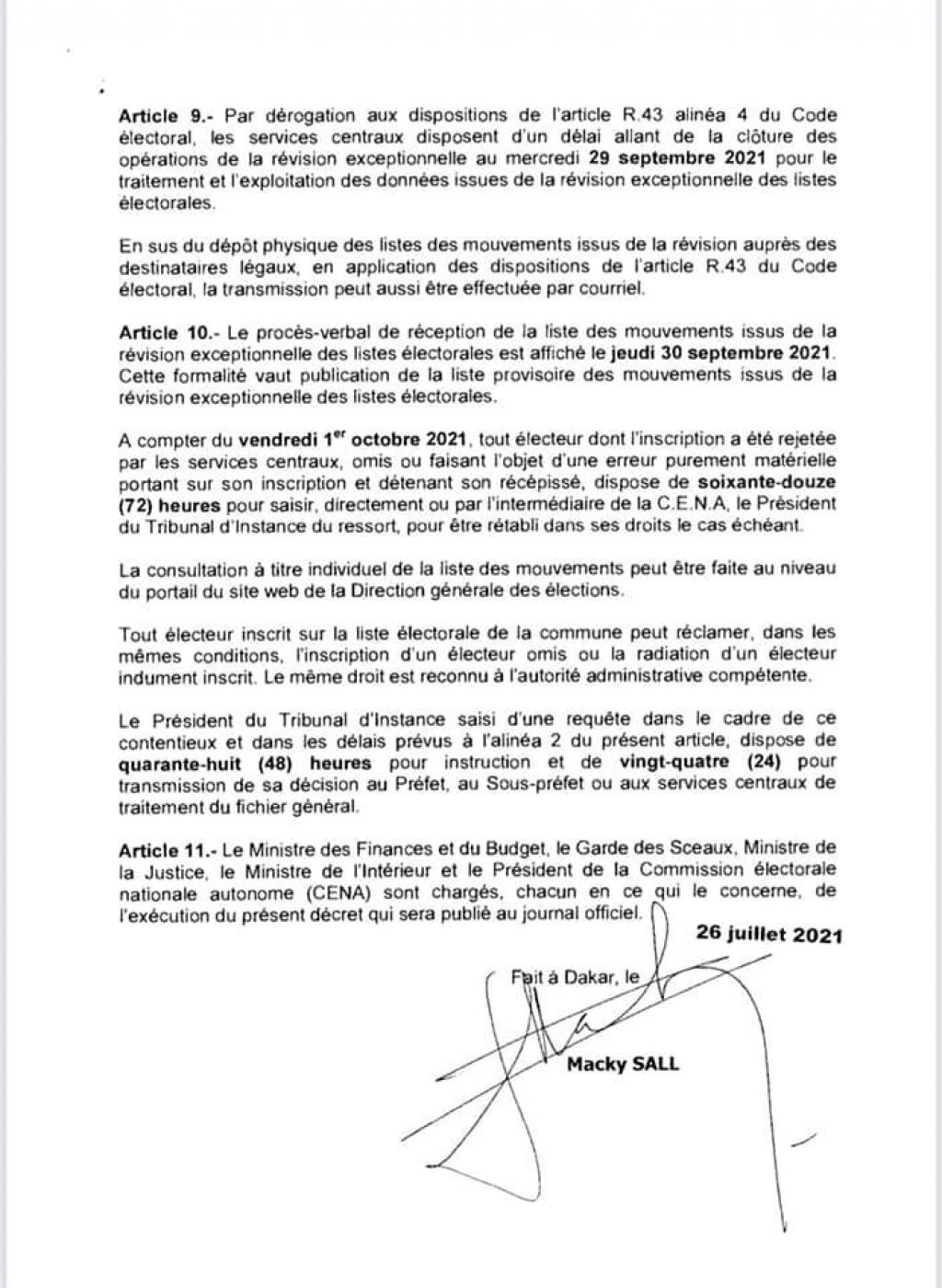 (Document)Révision des listes électorales : Macky a finalement signé le décret !
