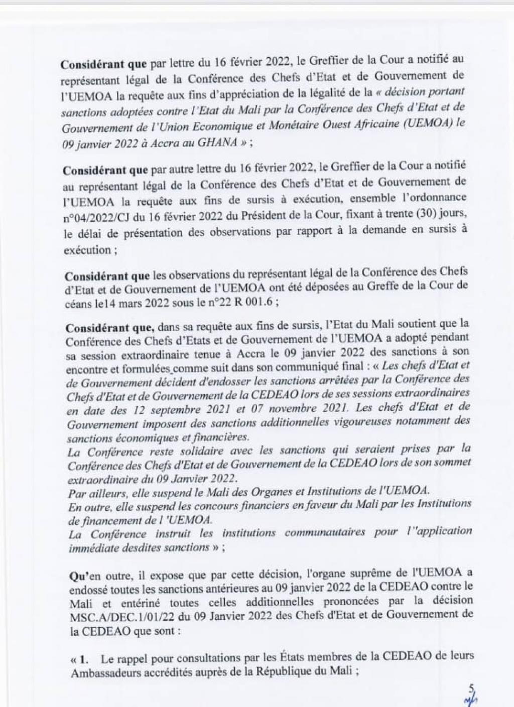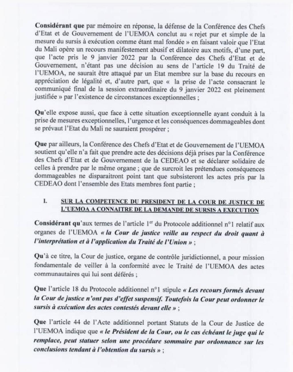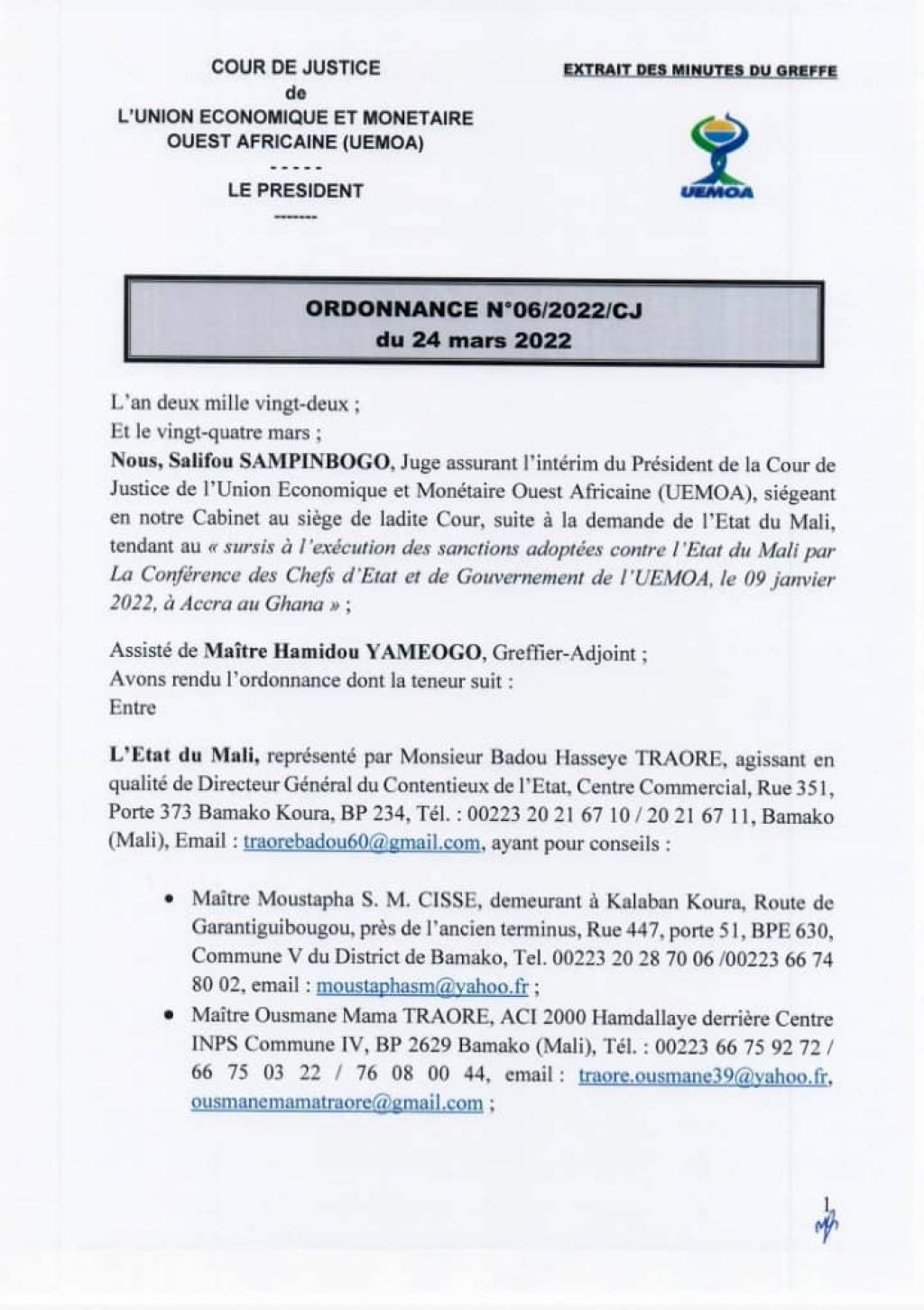 NETTALI.COM - Face à un Assimi Goïta qui refuse de céder le pouvoir, les chefs d’État ouest-africains avaient pris des sanctions fortes contre Bamako le 9 janvier dernier. Celles-ci viennent d’être suspendues par la Cour de justice de l’Uemoa.
