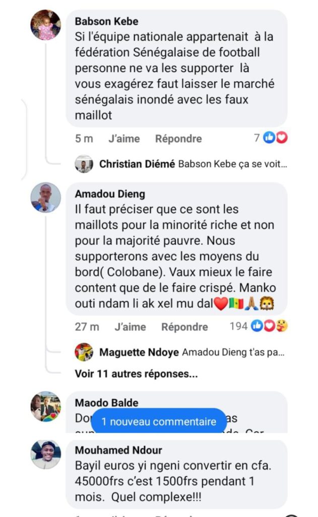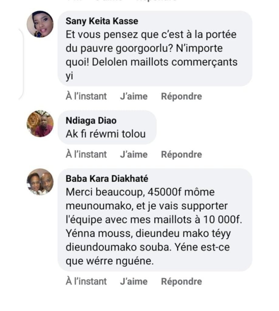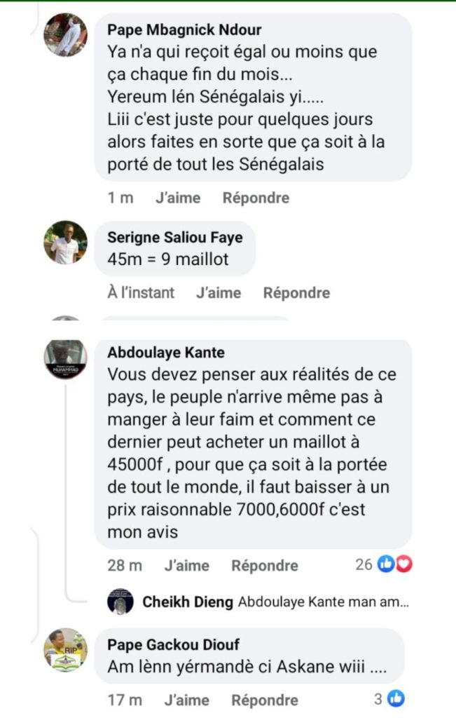 La Fédération sénégalaise de Football (FSF) dirigée par Augustin Senghor a fixé le prix du maillot du Sénégal à 45.000 Fcfa.