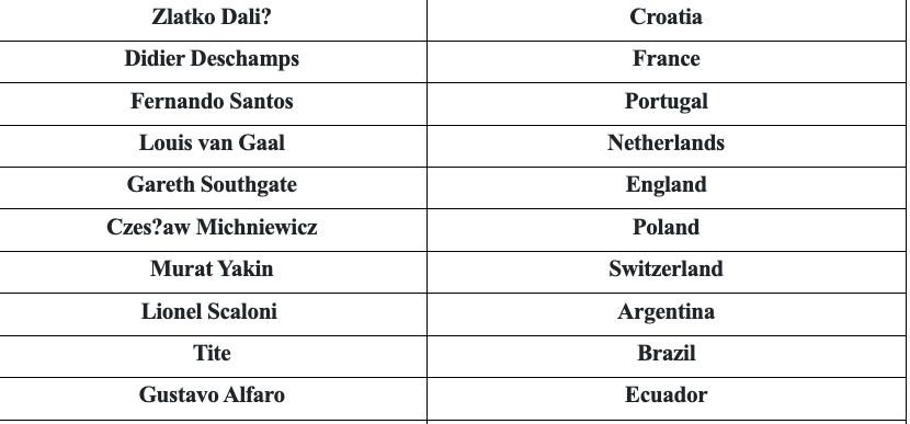 La liste est établie par l'International Federation of Football History & Statistics (IFFHS), une organisation d'études historiques et statistiques sur le football, créée en 1984. L'IFFHS s'est fait connaître pour ses multiples classements de clubs et de personnalités du monde du football, et notamment son classement mondial des clubs de football. La concurrence s’annonce rude pour El Tactico face notamment à Lionel Scaloni, vainqueur de la coupe du monde avec l’Argentine ou encore Walid Regragui, coach du Maroc, demi-finaliste au Qatar.