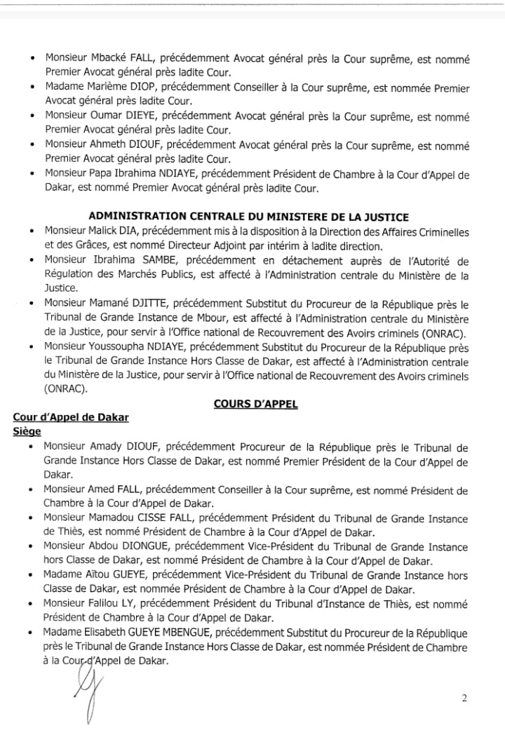 NETTALI.COM - Le président de la République, Macky Sall, a présidé ce lundi la réunion du Conseil supérieur de la magistrature. Plusieurs décisions ont été prises. C'est ainsi que Aly Ciré Ba est devenu le Premier président de la Cour suprême en remplacement de Cheikh Tidiane Coulibaly admis à faire valoir ses droits à une pension de retraite. Le désormais Procureur de la République, Amady Diouf est nommé Premier président de la Cour d'appel de Dakar. Abdou Karim Diop devient le Procureur de la République de Dakar. Voici l'intégralité des nominations.