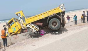 Le camion, pour sa part est complètement endommagé. Les problèmes de frein, un phénomène récurrent chez ce type de camion qui transportent du sable de mer.