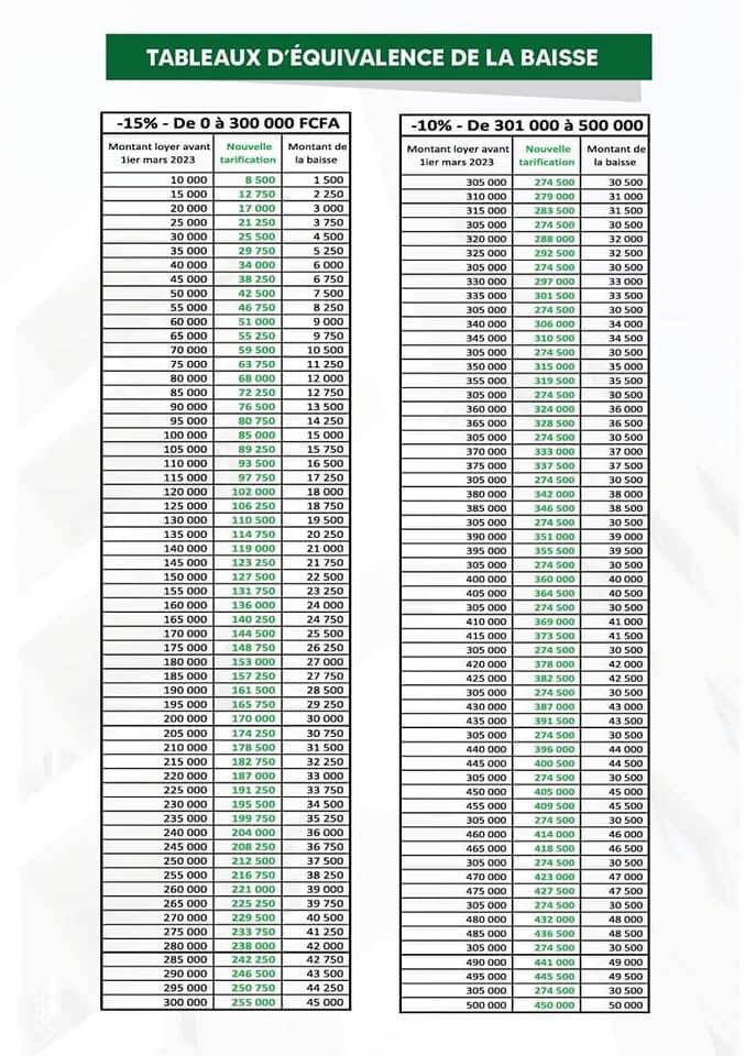 Le gouvernement a mis en place une Commission de régulation pour éviter que ce décret ne subisse le même sort que la loi de 2014 portant baisse des prix du loyer. Momar Ndiaye a été nommé, ce mercredi en Conseil des ministres pour diriger cette commission. Voici le tableau d'équivalence de la baisse.