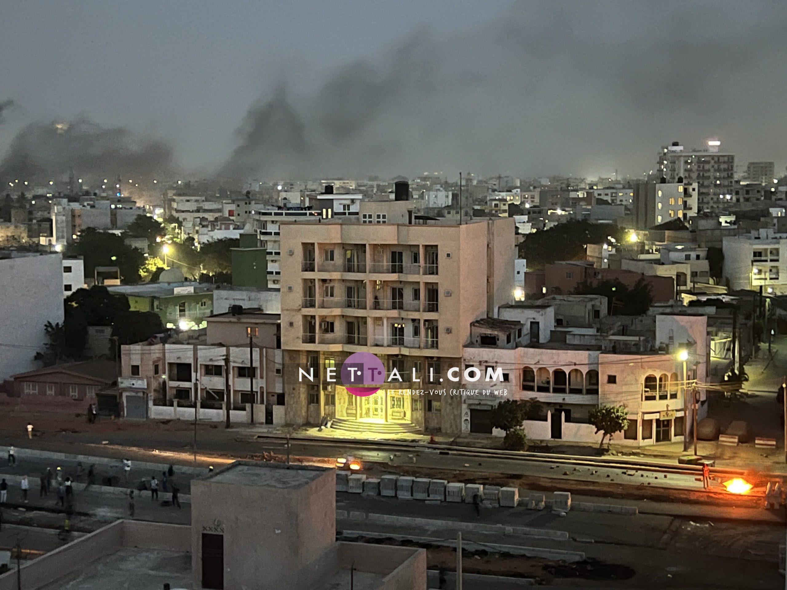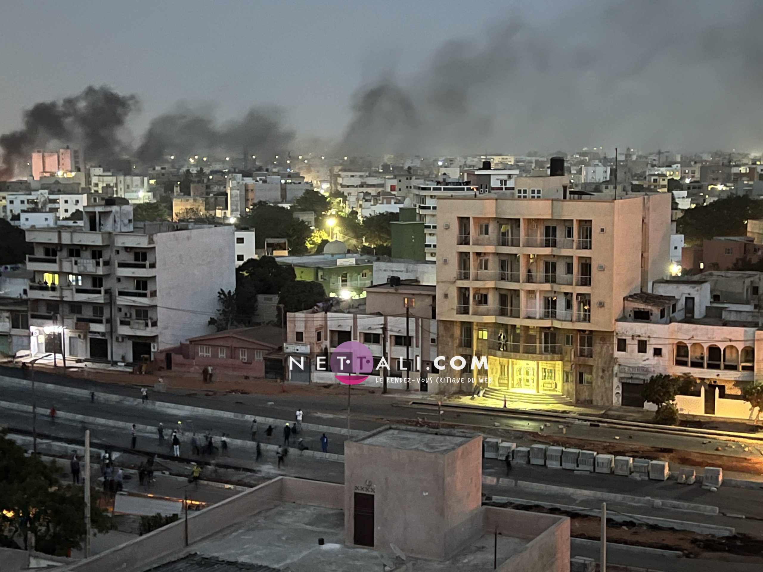 D'un nombre de dix environ, ce sont finalement quelques dizaines qui ont commencé à affluer, venant de la zone de Sacré-Coeur 3 pour aboutir au Rond-point Liberté 6, où un autre groupe s'occupait d'allumer des pneus d'où se dégageait une fumée noire et épaisse.