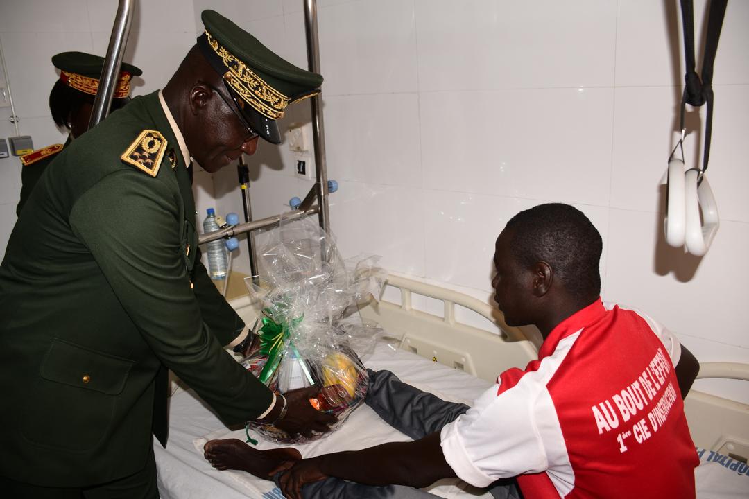 NETTALI.COM - Le Chef d'Etat major général des armées (CEMGA) a été au chevet des militaires hospitalisés à l'Hôpital Principal (HPD) et à l'Hôpital militaire de Ouakam (HMO). Une visite bimestrielle aux militaires internés (blessés ou souffrant d'une maladie) qu'il a initié. Occasion pour le Général de leur apporter soutien et réconfort du Commandement.