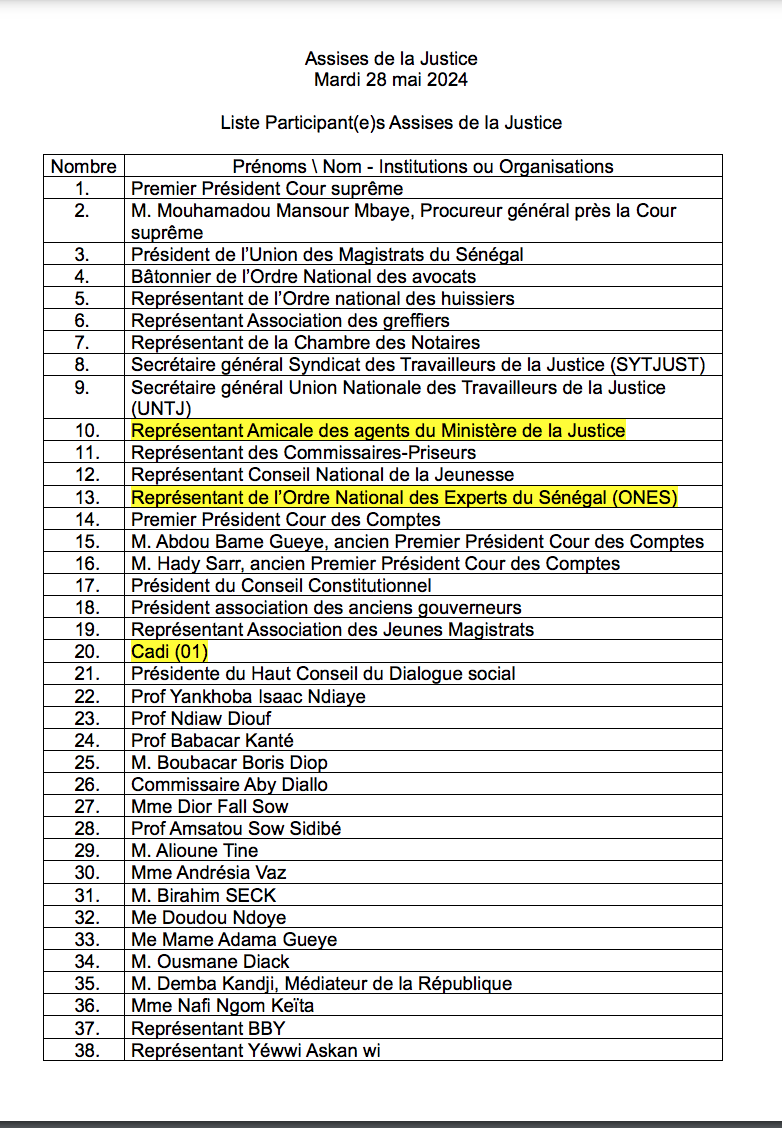 Au total, 263 participants sont attendus. Des Représentants des institutions de la République, des partis, des syndicats toutes corporations confondus, des juristes, des représentants de la société civile, des anciens détenus...se pencheront tous sur les réformes à entreprendre pour une amélioration du service public de la justice.