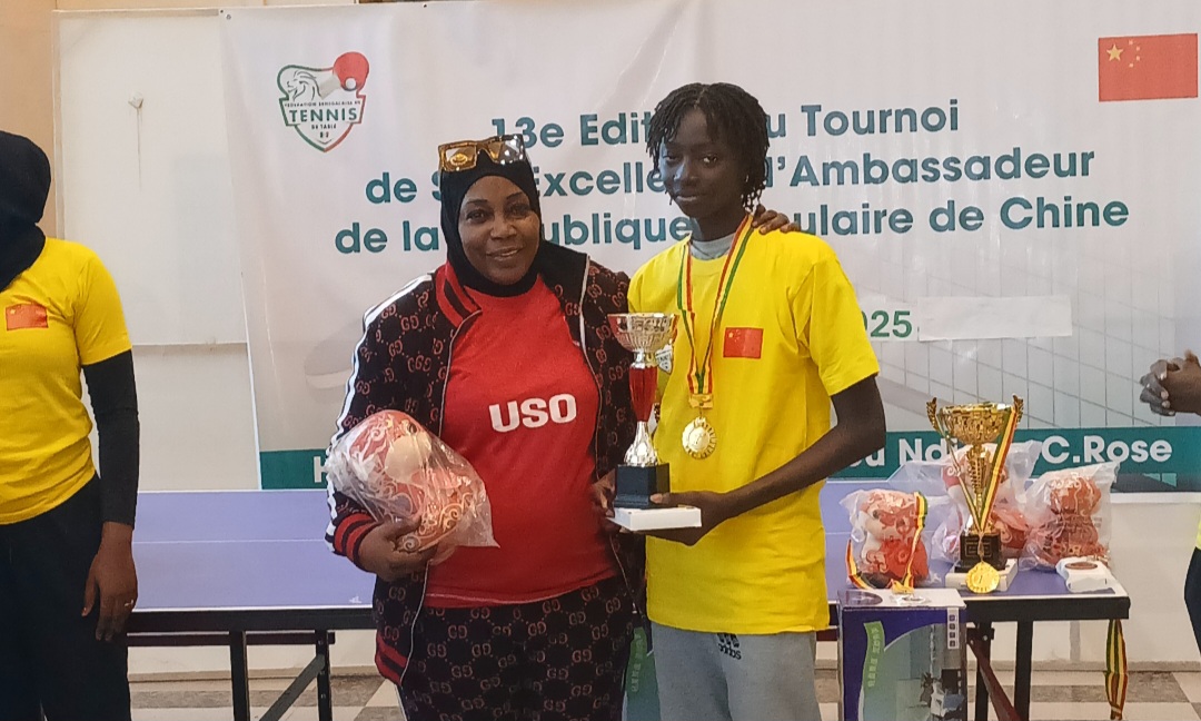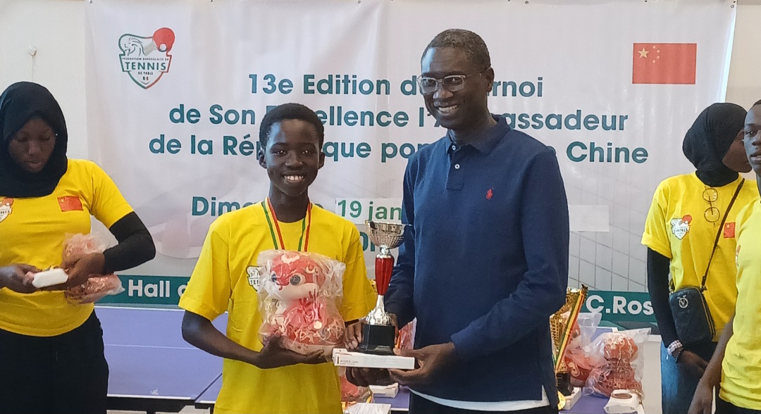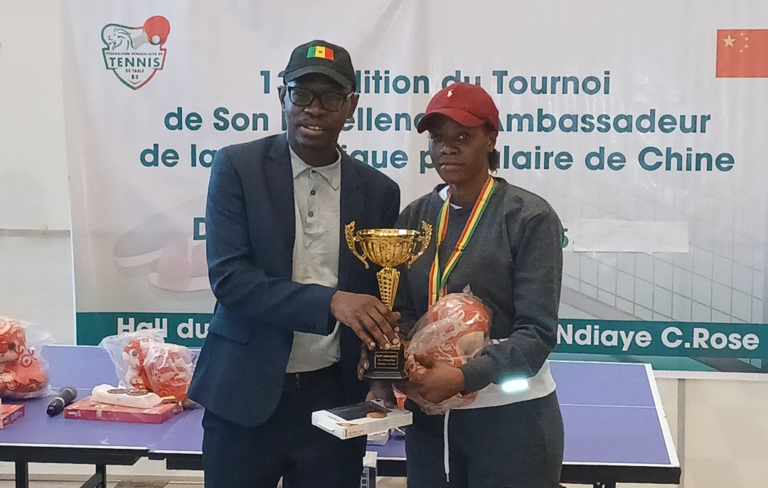 NETTALI.COM - La 13ème édition du Tournoi de tennis de table de l'ambassadeur de la République populaire de Chine a vécu ce dimanche 19 janvier, au Grand Théâtre. Dans la petite catégorie. Ndèye Fatou Diallo (juniors filles) et Gilles Faye (juniors garçons) ont décroché la médaille d’or. Du côté des Séniors, Adama Dramé (Dames) et Ass Kamara (Hommes) sont montés sur la plus haute marche du podium.