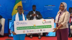 Le premier Prix a été décerné à "Ai karangué" dans le domaine des transports terrestre (Université numérique Cheikh Hamidou KANE) pour un montant en espèces de 20 000 000 FCFA. Le deuxième prix à Firndé BI (Institut Supérieur d’Informatique) pour un montant en espèces : 10 000 000 FCFA et le troisième prix à Agri-drone vision (École Supérieure Polytechnique) pour un montant en espèces de 5 000 000 FCFA. En sus, les lauréats seront accompagnés à travers un mentorat et des bons d’achats en matériel.