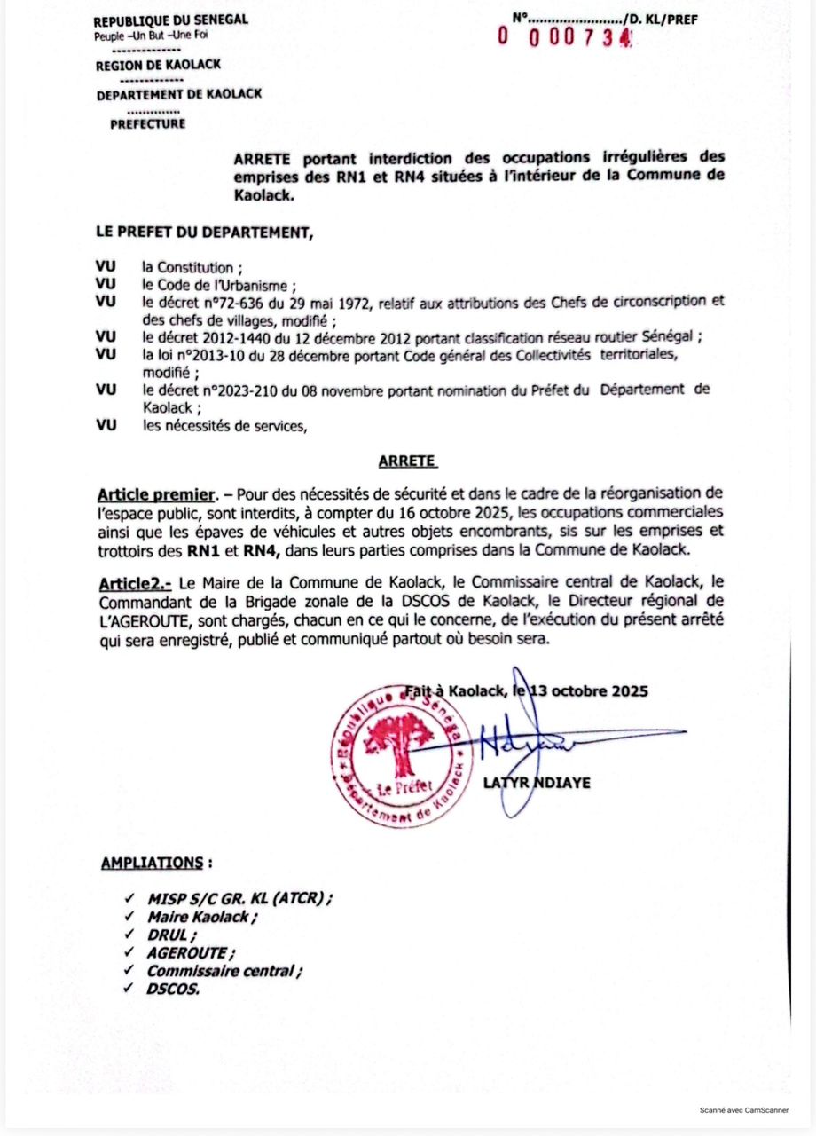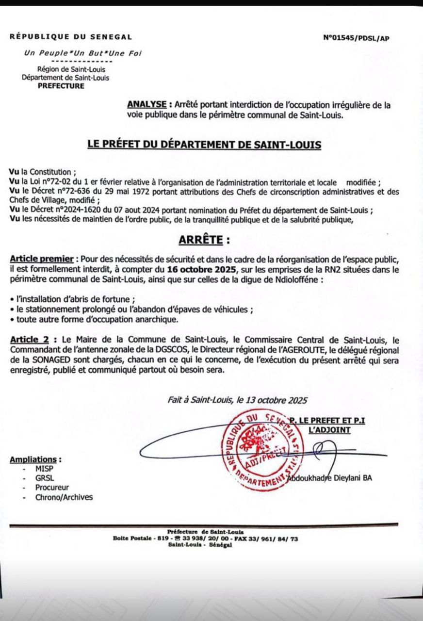 Ces mesures, applicables à compter du jeudi 16 octobre 2025, ont été prises sur instruction du ministre de l’Intérieur et de la Sécurité publique.