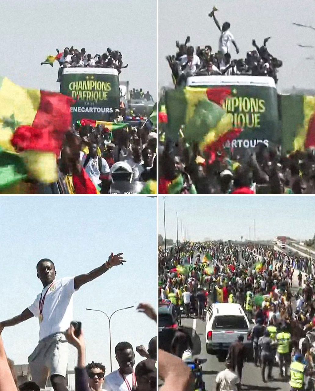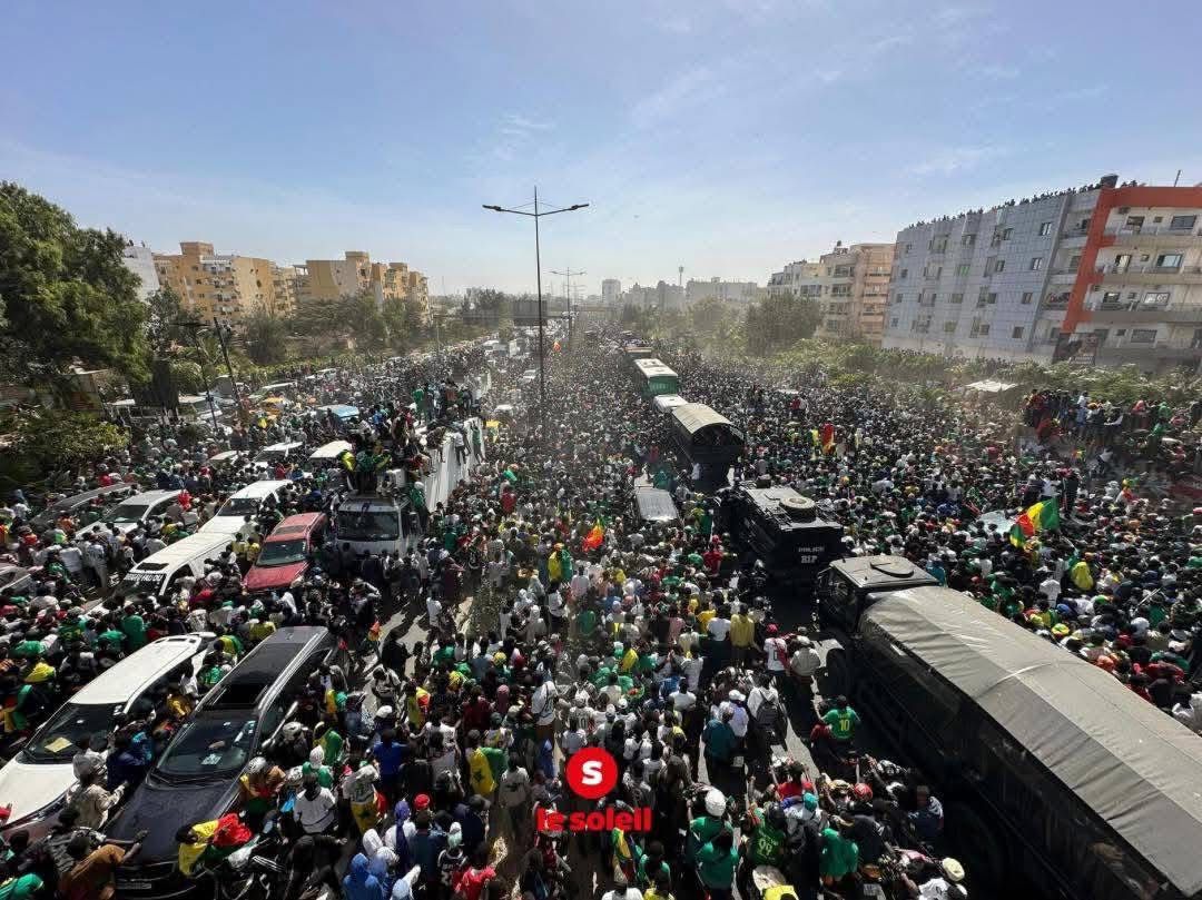 NETTALI.COM - Au lendemain de leur arrivée à Dakar, tard dans la soirée, les doubles champions d’Afrique ont été accueillis par une foule immense en liesse. Les Lions ont en effet eu droit, partout où ils sont passés à travers les rues de la capitale drapées des couleurs nationales, à des messages de félicitations.